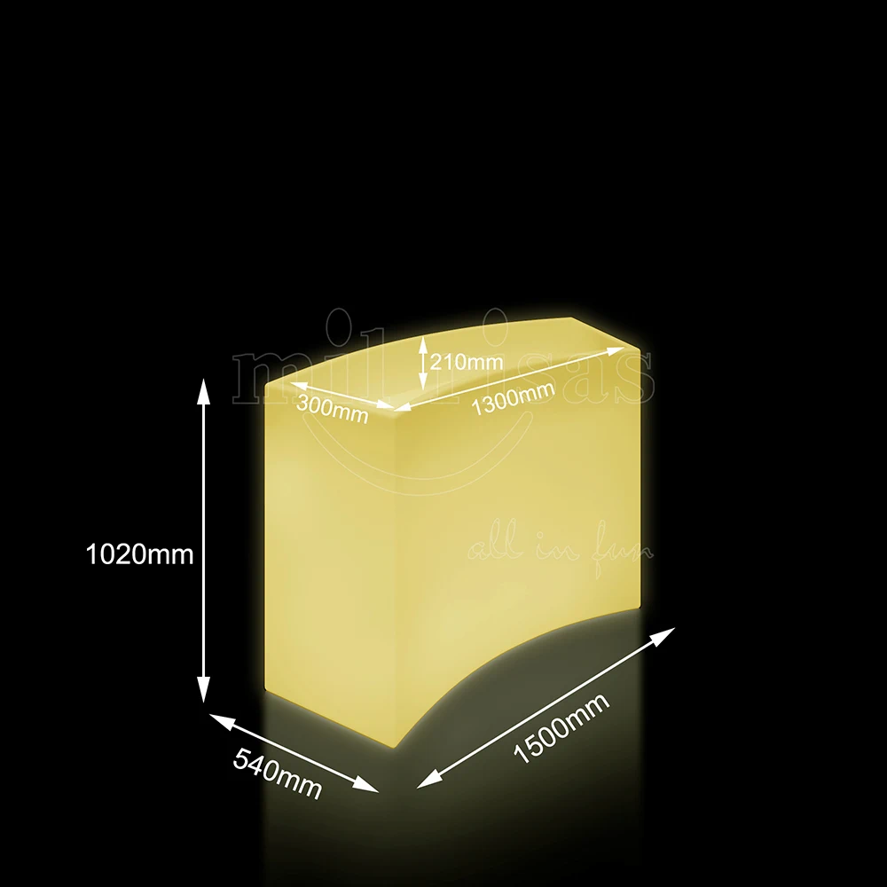 Curved LED Bar Counter with Bucket makes a stunning addition to any contemporary space. And this LED bucket table is designed for high durability. Also perfect for any modern decor. Check our collection of LED Light-up End Table with waves. It goes with our moving lighted buckets.