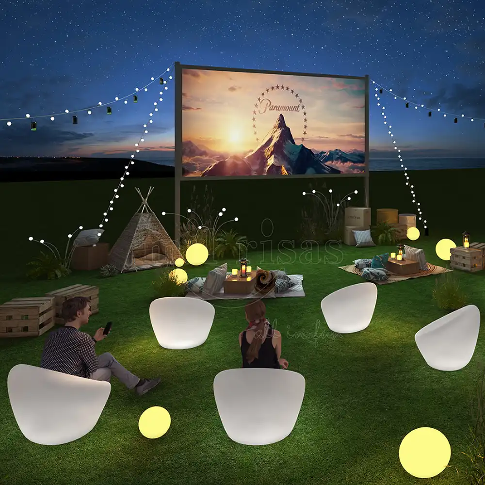 Elevate outdoor entertainment with our premium LED lighted chair, designed to transform lawns or beaches into immersive starlight cinemas. These ergonomic, cordless chairs provide lasting comfort and soft, functional illumination for safe viewing. Made from durable, eco-friendly PE, they offer a weather-resistant, social media-friendly seating solution for event planners seeking high visual impact.