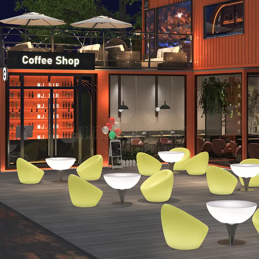 Our signature illuminated chair collection transforms outdoor spaces with vibrant ambient lighting and ergonomic comfort. Paired seamlessly with matching LED coffee tables, these weather-resistant, wireless, energy-efficient pieces create a welcoming, social media-ready atmosphere for cafés, rooftop bars, garden pubs, and other commercial venues.
