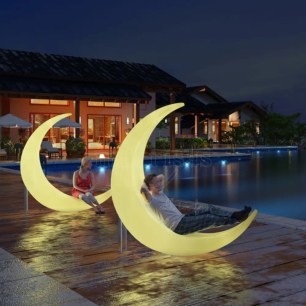 - Elegant Design: Its glowing crescent shape bathes the terrace in a soft, luxurious light.