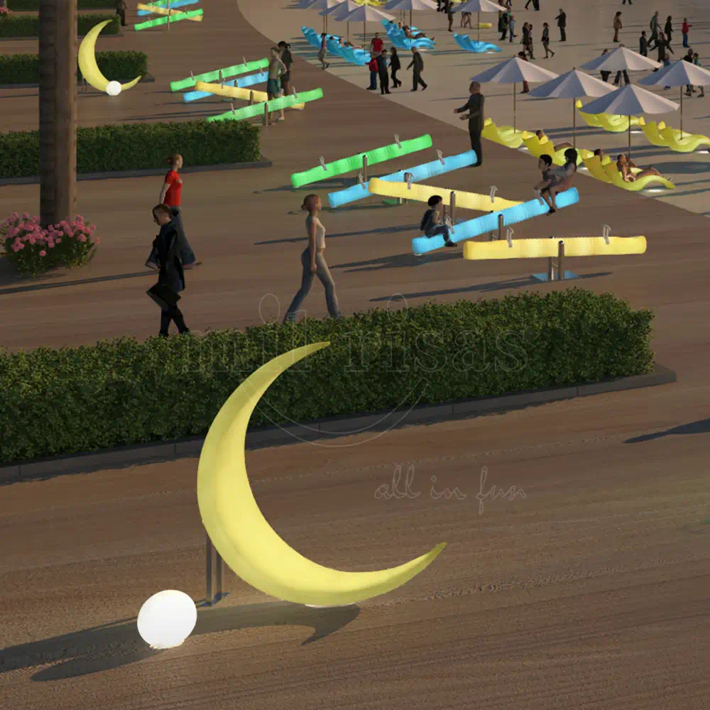 Make your seaside resort shine with the LED Moon Floor Light Hanging Chair. Its moon-inspired design combines beauty and functionality, creating a glowing focal point that instantly enhances the relaxing beachside atmosphere. The soft LED light gently casts a soothing ambiance, adding an unforgettable touch of elegance and charm to the serene coastline.