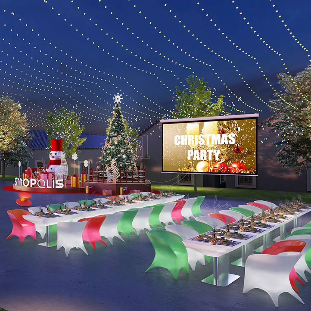 Bring holiday magic to your Christmas party with the LED Light-up Lounge Chair, glowing warmly across the festive space. Pair it with the Light-up End Table to create cozy corners for guests to relax and socialize. Surrounded by games and decorations, these chairs add playful charm and vibrant color to every gathering. Their lively illumination highlights the festive spirit, making each moment memorable.