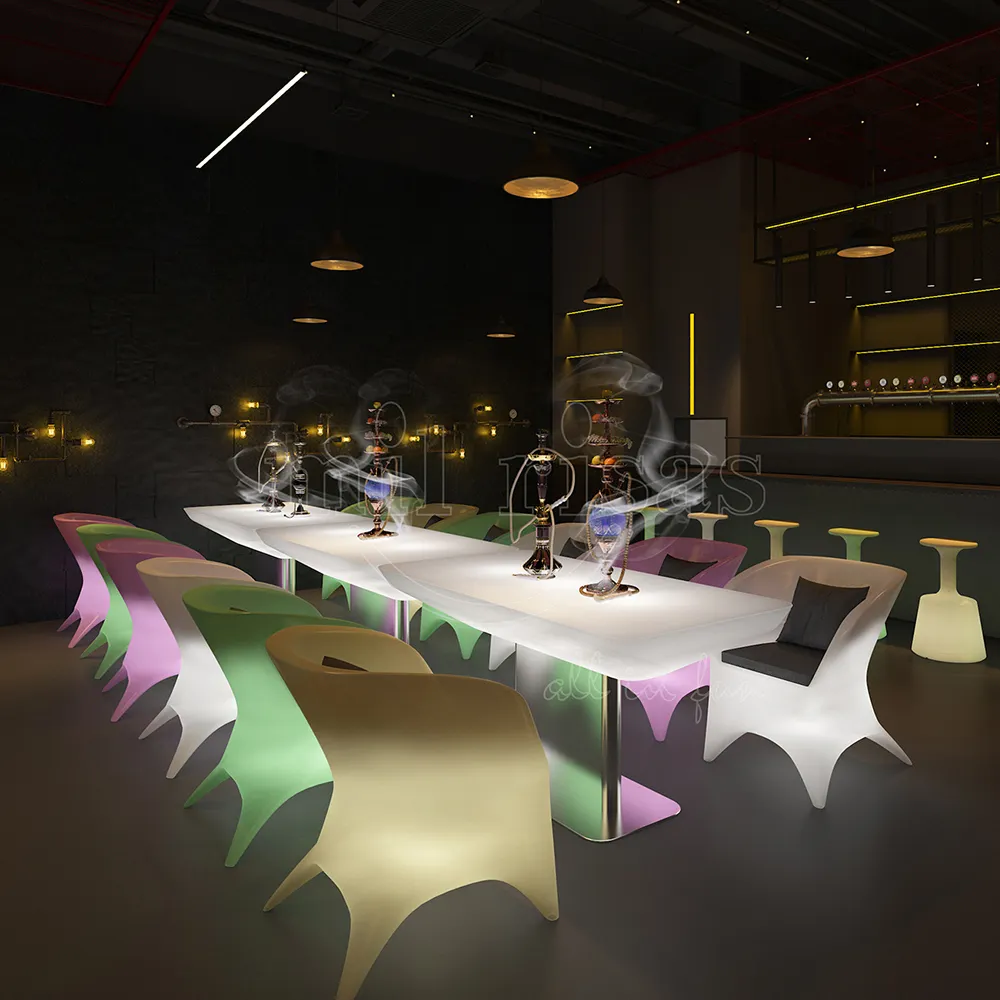 Elevate your hookah lounge with the Color-Changing LED Lounge Chair, casting a gentle glow over the intimate, dimly lit space. Pair it with a stylish table to create inviting seating for friends to gather and unwind. Cushions and pillows add comfort and sophistication, complementing the lounge’s ambient glow. The chairs’ dynamic colors create a vibrant, immersive atmosphere, making every evening feel unique and memorable.